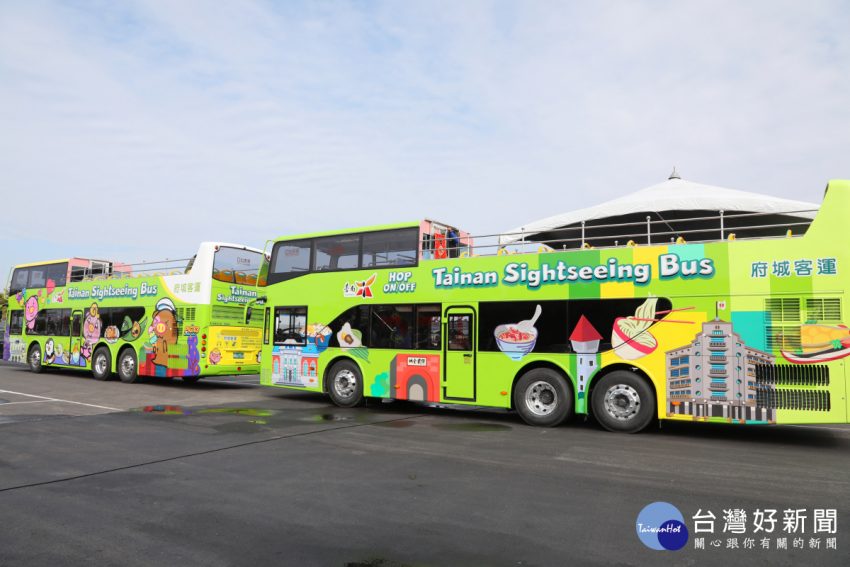 雙層巴士車體意象分別採用可愛歡樂、繽紛時尚與古典雅緻三種不同風格的意象設計塗裝。 「台南雙層巴士」2月10日正…