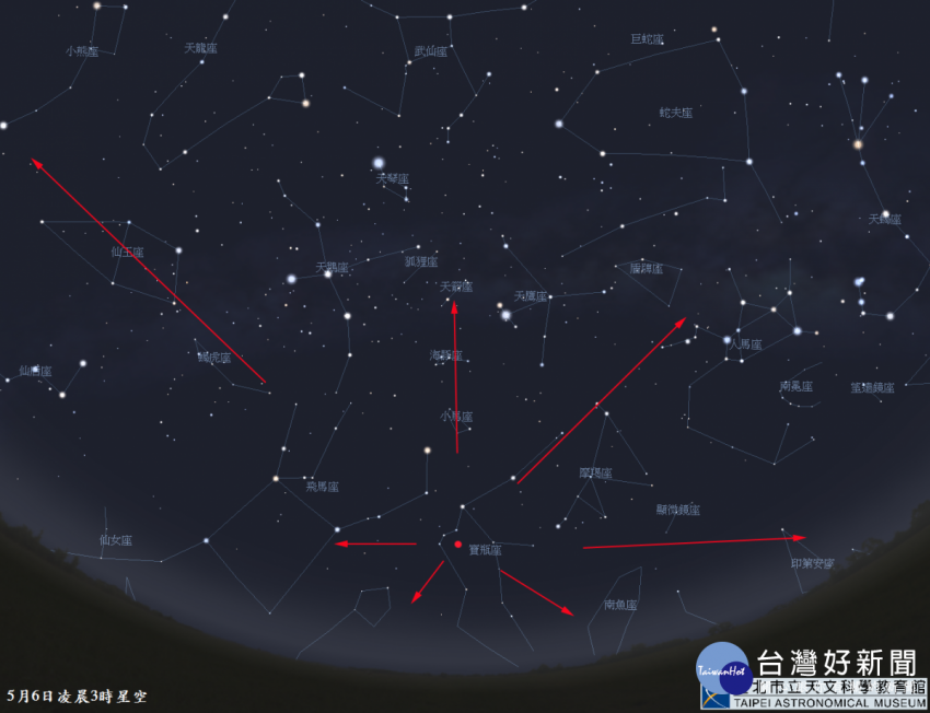 5月6日凌晨3時星空(圖/台北天文館) 天文迷這個週末要熬夜了!今年夏季第一場流星雨即將「爆發」,台北天文館指…