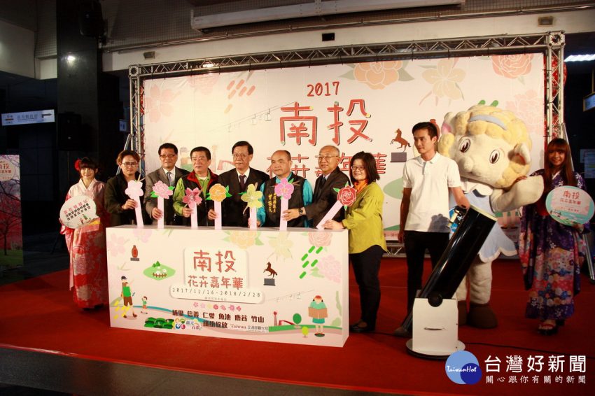 林明溱縣長與來賓們共同宣告花卉嘉年華登場。(記者扶小萍攝) 今冬南投縣除了溫泉季的暖心健康活動,16日起系列的…