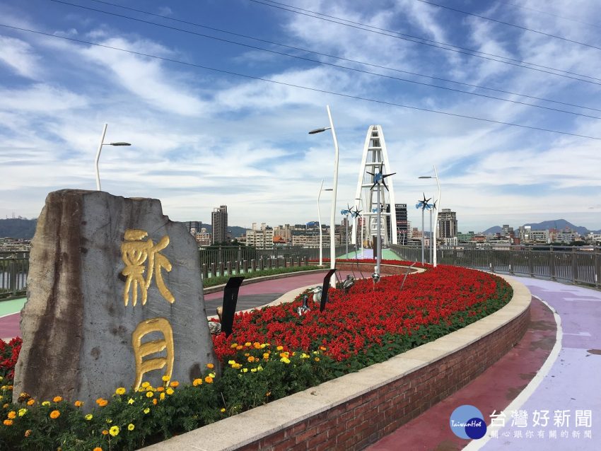 新月橋上漫步賞花遊 1萬4千株各式花草隨風搖曳