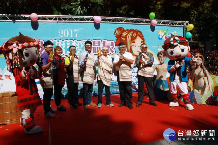 縣府觀光處長王源鍾、溫泉觀光協會理事長李吉田等與來賓宣告北港溪溫泉季11日登場。(記者扶小萍攝) 南投縣不僅風…