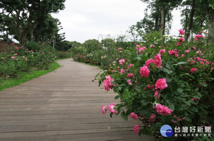 現代玫瑰園區內新設置寬闊的木棧道,讓民眾能更便利的在花叢間賞玩、拍攝。 位於花博公園新生園區台北玫瑰園-秋季玫…