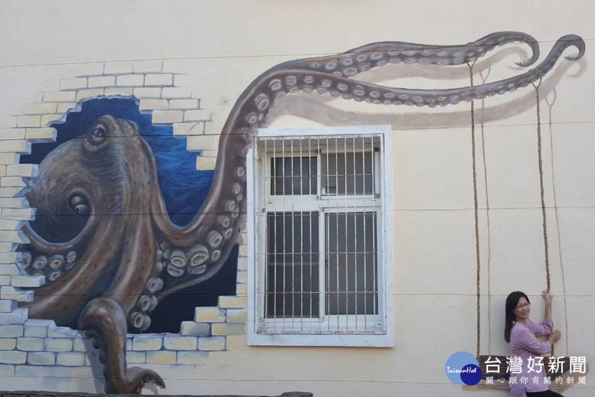 彩繪台南將軍區馬沙溝漁村驚奇,章魚腳可以玩鞦韆。 章魚腳可以玩鞦韆成了大人小孩最佳趣處,是台南市將軍區馬沙溝社…