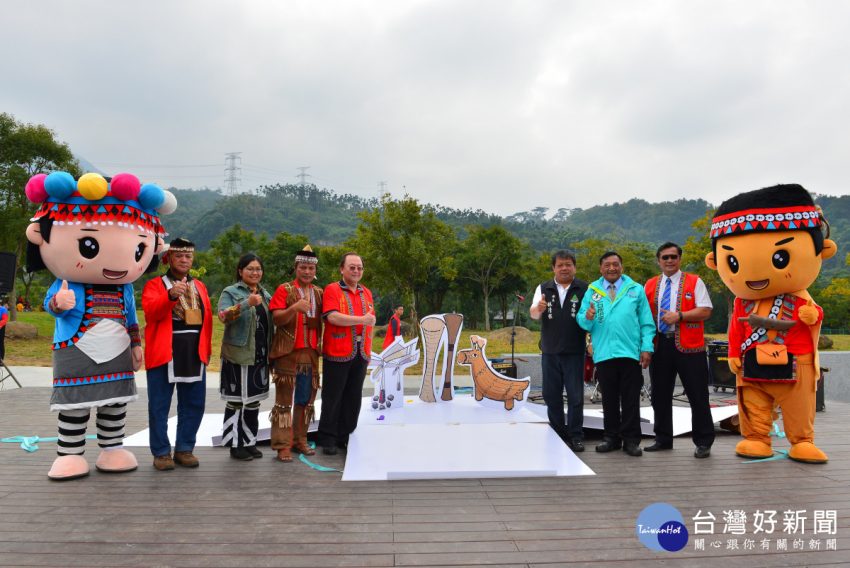 圖說1、2:在與會來賓與傳鄒族圖騰、舞蹈,共影共舞下,藝起鄒年慶活動正式啟動。 交通部觀光局阿里山國家風景區管…