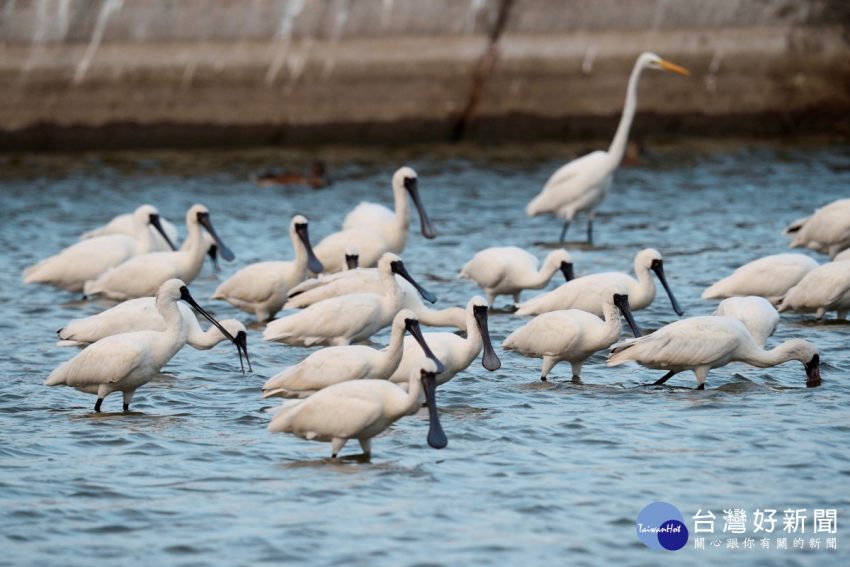 圖為黑面琵鷺。 東北季風吹起,就是候鳥展翅起飛、旅行到南方的時節。位在東亞澳候鳥遷徙路線上的鰲鼓濕地森林園區,…