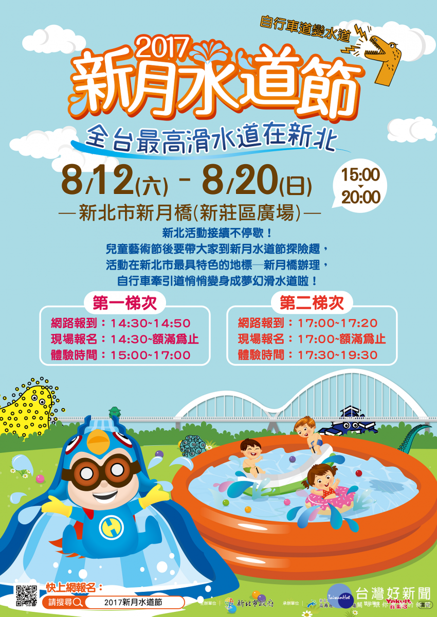 新月水道節,邀民眾一起來體驗沁涼滑水樂趣。(圖/高管處提供) 新北市繼兒童藝術節後,首創結合新月橋自行車牽引道…