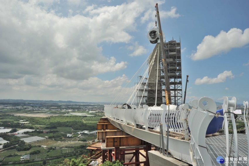 崗山之眼園區的天空廊道14日舉行「主塔柱頭安座典禮」。(圖/記者許凱涵攝) 岡山區小崗山上新觀光指標景點-崗山…