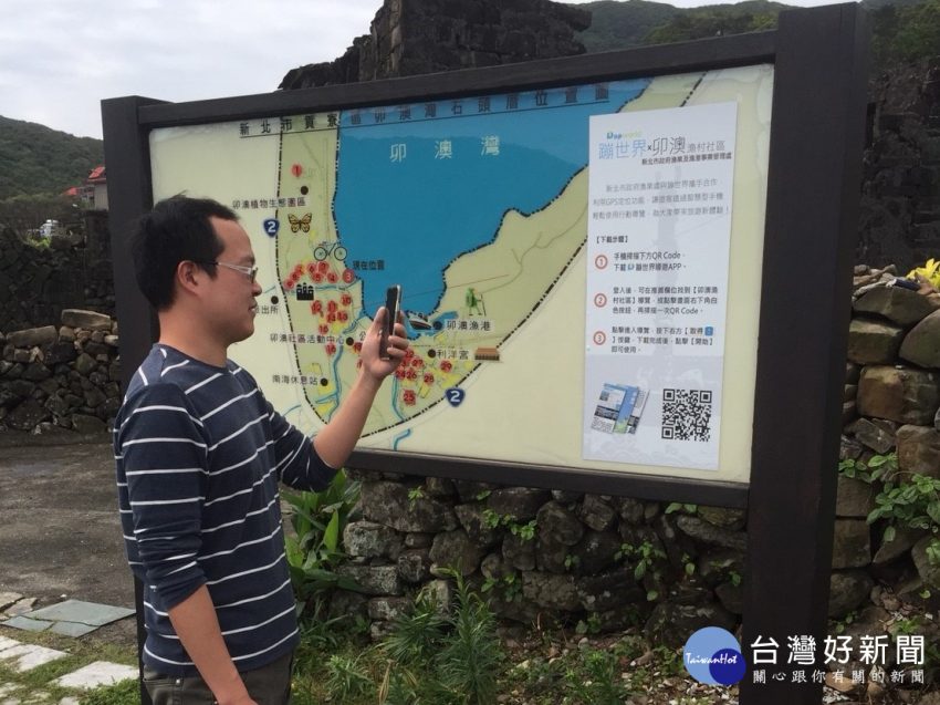 新北為營造親海環境,在貢寮區卯澳漁村的11處景點設置行動導覽服務,讓遊客只需以手機或平板電腦就能進行導覽。(圖…