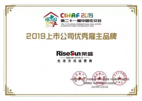 榮盛發展獲2019上市公司優秀僱主品牌