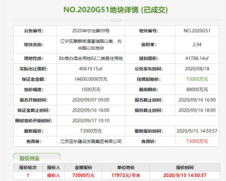 亞東建設7.3億元競得南京江寧區1宗商住用地_空間規劃