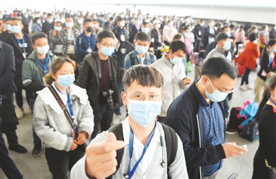 3月19日,兩趟高鐵專列從湖北荊州出發,“點對點”輸送1631人前往廣東企業返崗就業。圖為務工人員陳安心(…