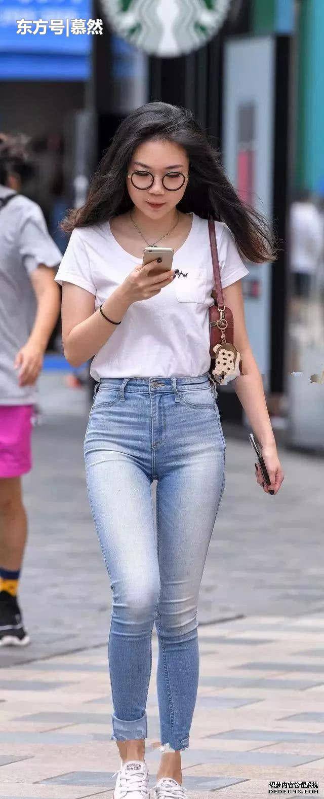 街拍女神:牛仔褲顯瘦效果超贊 靚麗時尚的牛仔褲美女,展現出嬌柔的姿態,可以讓整個穿搭的線條看起來更顯纖細和優美…
