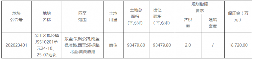 世紀金源9.36億元摘得上海市金山區一宗商住用地