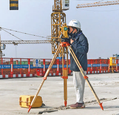 鄭州南站施工現場,測量員正在用全站儀進行施工點位測量。 本報記者 畢京津攝 貴陽龍洞堡國際機場T3…