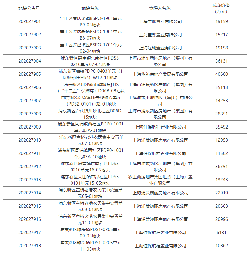 中國網地產訊 1月20日,上海市集中出讓18宗徵收安置房用地。其中,寶山區3宗、浦東新區15宗。總…