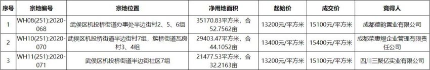 德商15100元/平競得成都1宗住宅用地 溢價率14.39%
