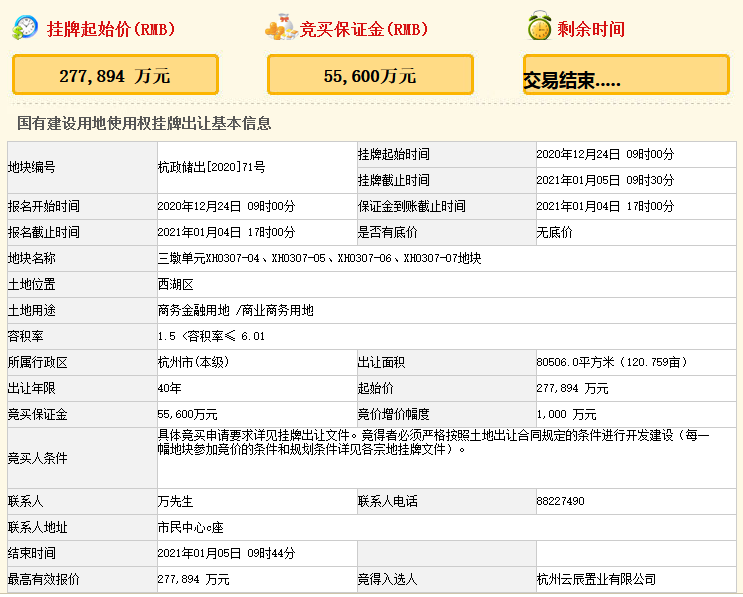 杭州西投27.79億元摘得杭州市西湖區一宗商業用地