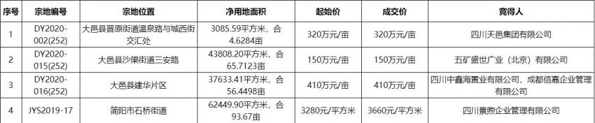 四川景煦企業管理3660元/㎡競得成都1宗商住用地 溢價率為11.59%