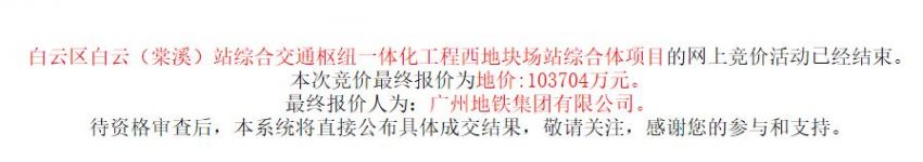 廣州地鐵10.37億元競得廣州1宗商業用地