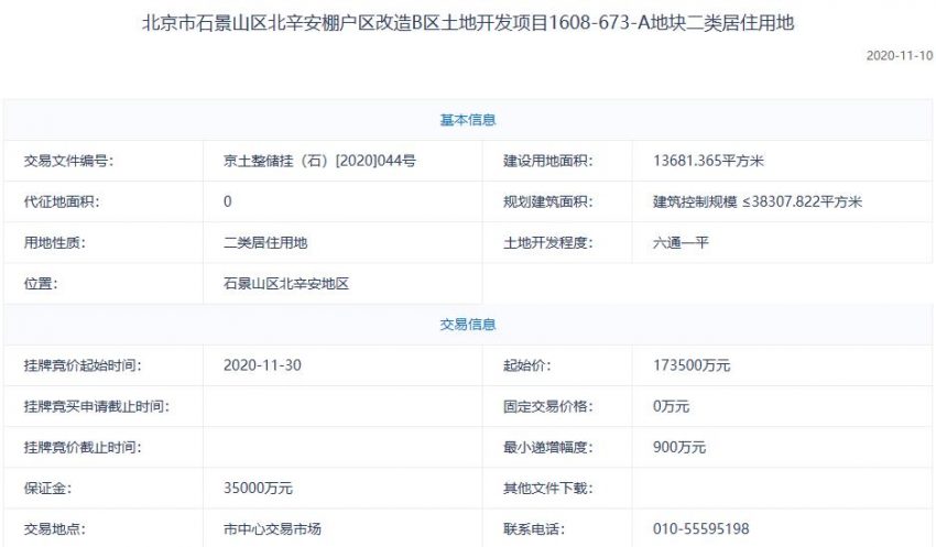 中海17.9億元競得北京石景山1宗不限價地塊 溢價率3.17%