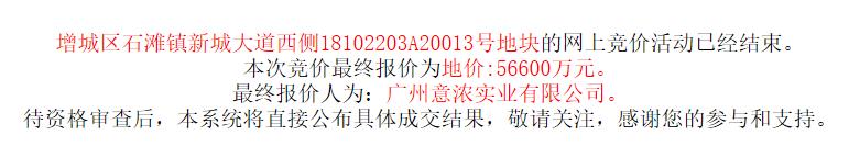 中國網地產訊 12月11日,廣州增城區1宗商住用地成功出讓,最終廣州意濃實業有限公司(景業名邦)以5.66億元…