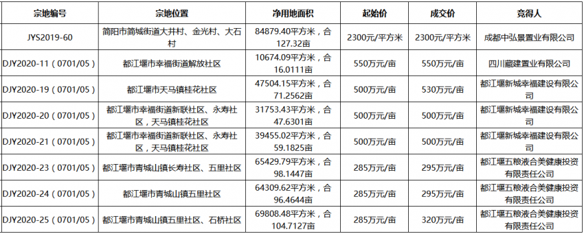成都27.18億出讓13宗地塊 五糧液9.09億競得都江堰3宗住宅用地