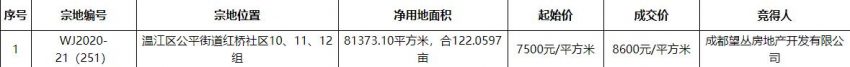 中國網地產訊 11月18日,成都溫江1宗住宅用地成功出讓,最終成都望叢開發有限公司(花樣年)以8600元/㎡競…