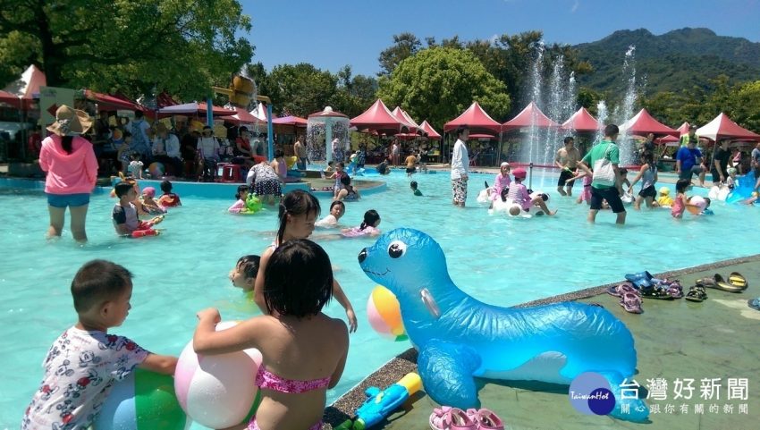 水里玩水節活動,有水玩,小朋友最開心了。(記者吳素珍攝) 107水里玩水節於今(14)日在水里鄉親水公園盛大開…