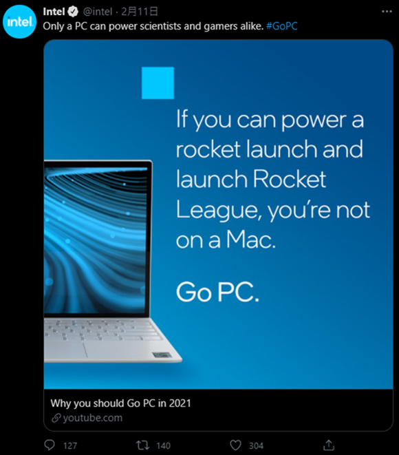 Intel 官方 Twitter 釋出調侃 M1 廣告,這些是你在 Mac 上無法做的事